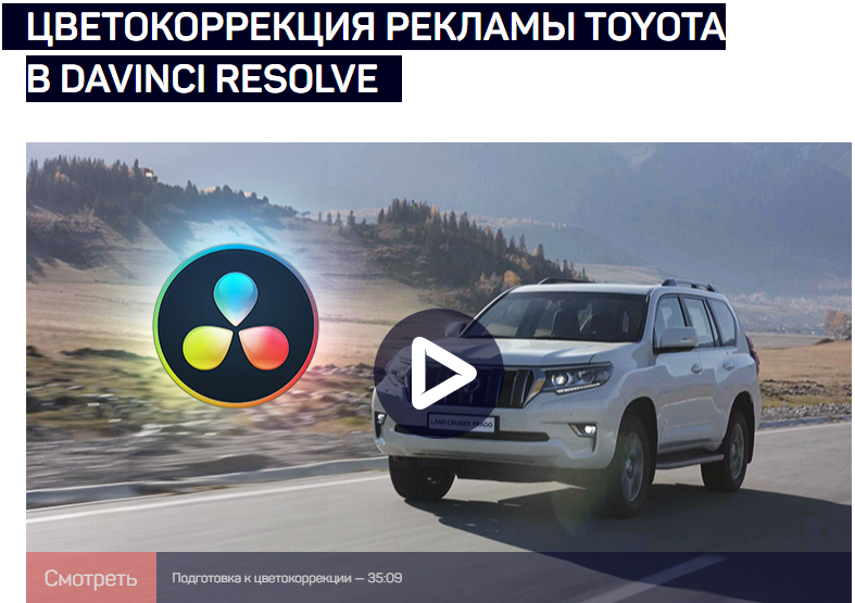 Получи скидку на мастер-класс «Цветокоррекция рекламы Toyota в DaVinci Resolve»