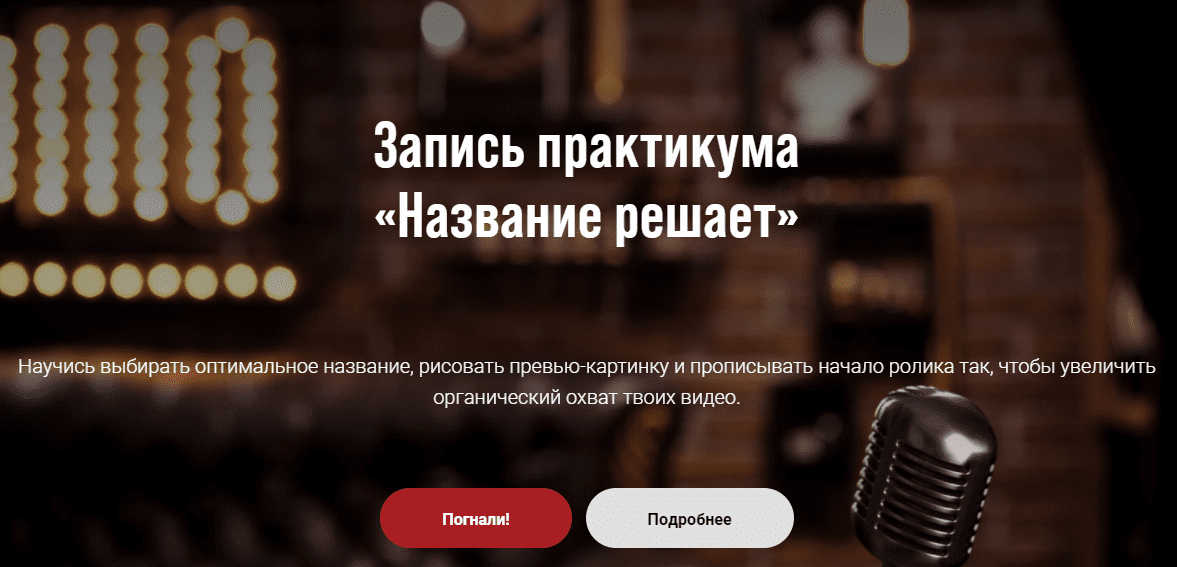 На мастер-классе мы с тобой и другими участниками практикума подберем оптимальное название, концепт превью-картинки и разложим первые секунды ролика.