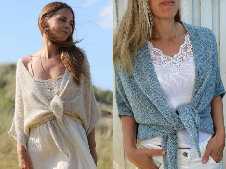 Летний кардиган интересной конструкции, вязаный спицами сверху.vjazhi.ru