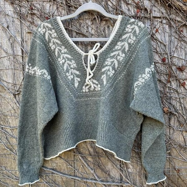 Bifurca – женственный пуловер укороченного силуэта с панелями жаккардового узора. Эта модель порадует любителей нескучного вязания и необычных решений.