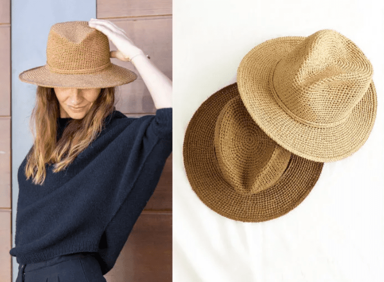 Летняя шляпа в стиле «федора», вязанная крючком из рафии, мастер-класс с фото.