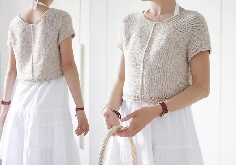 Вы можете связать такой топ из любой другой пряжи. Возможно связать такую модель в стиле "колорблок", то есть секции лицевой и изнаночной глади могут быть связаны из пряжи разного цвета. Тут все будет зависеть от вашей фантазии и вкуса.