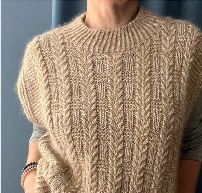 Великолепная текстура узора похожа на колоски или листики, которые тянутся к солнцу, навстречу новому дню, новой жизни. Свободный крой изделия позволит носить этот жилет с рубашками, создавая очень стильный вид.