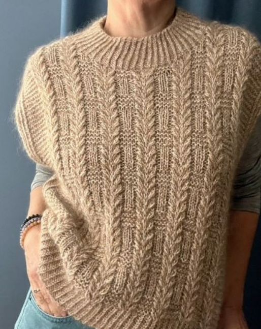 Великолепная текстура узора похожа на колоски или листики, которые тянутся к солнцу, навстречу новому дню, новой жизни. Свободный крой изделия позволит носить этот жилет с рубашками, создавая очень стильный вид.