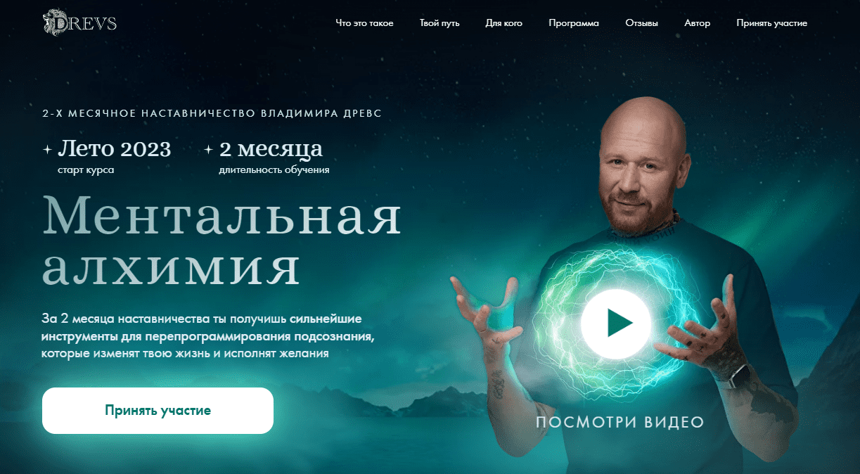 За 2 месяца наставничества ты получишь сильнейшие инструменты для перепрограммирования подсознания, которые изменят твою жизнь и исполнят желания. Владимир Древсdrevs.me