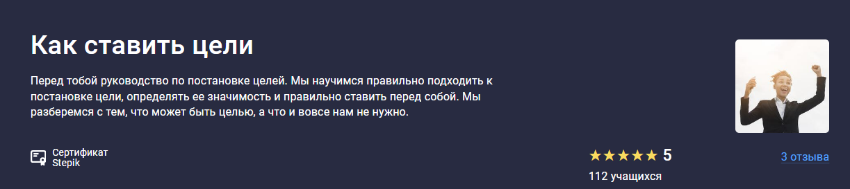 Перед тобой руководство по постановке целей. Мы научимся правильно подходить к постановке цели, определять ее значимость и правильно ставить перед собой. Мы разберемся с тем, что может быть целью, а что и вовсе нам не нужно.stepik.org