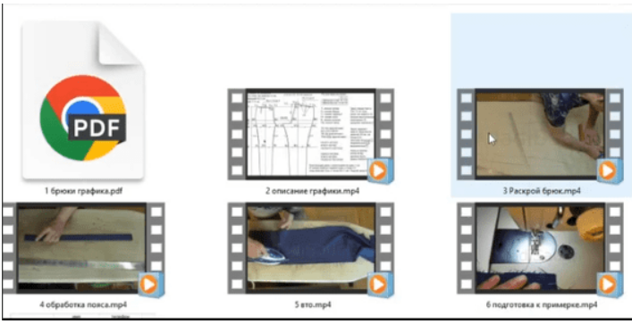 Так же в видеоматериале есть показ построения конструкции на бумаге и раскрой на ткани, подготовка брюк к примерке, самой примерки пока нет.