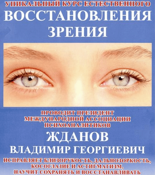 Зрение – это то, что беспокоит каждого человека. Хорошо видеть – очень важно! Но большое количество людей сталкивается с такой проблемой, как падение зрения. Многие уверены, что в этой ситуации существует только два выхода – это всю жизнь носить очки или линзы, или решиться на операцию. Однако, это совсем не так! Восстановить зрение реально, с помощью разных методов. Есть разработанный целый комплекс для восстановления зрения от профессора Жданова.