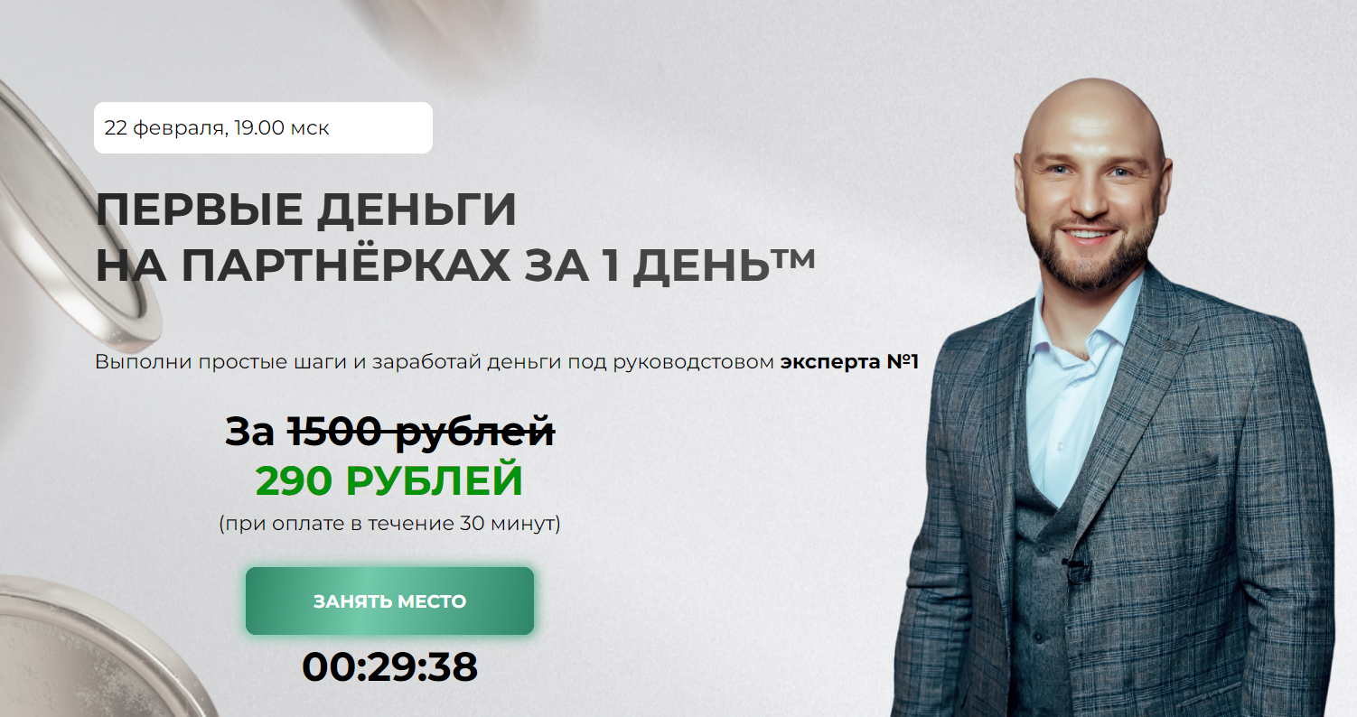 Абсолютно каждый человек может зарабатывать на партнёрках, если понимает что конкретно нужно делать. На мастер-классе я открою экран своего ноутбука и покажу шаг за шагом что нужно сделать, чтобы за 1 день получить первые комиссионные и открыть для себя новую дополнительную возможность для заработка.