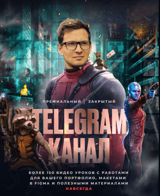 Закрытый канал, это вечный онлайн курс, в котором регулярно выходят новые уроки, добавляются макеты дизайнов в Figma и много другое, при том, что вы заплатите один раз.