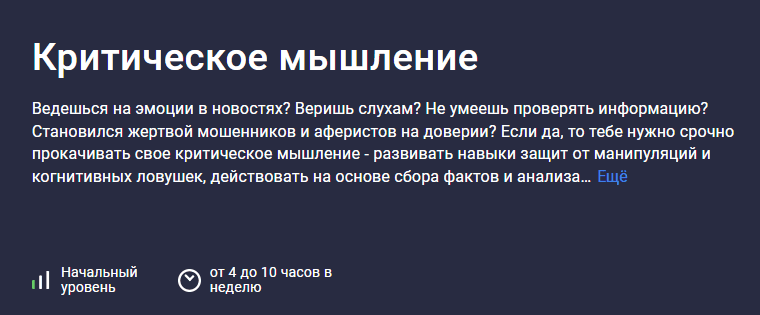 Если да, то тебе нужно срочно прокачивать свое критическое мышление - развивать навыки защит от манипуляций и когнитивных ловушек, действовать на основе сбора фактов и анализа аргументов. Этому и учит мой курс.