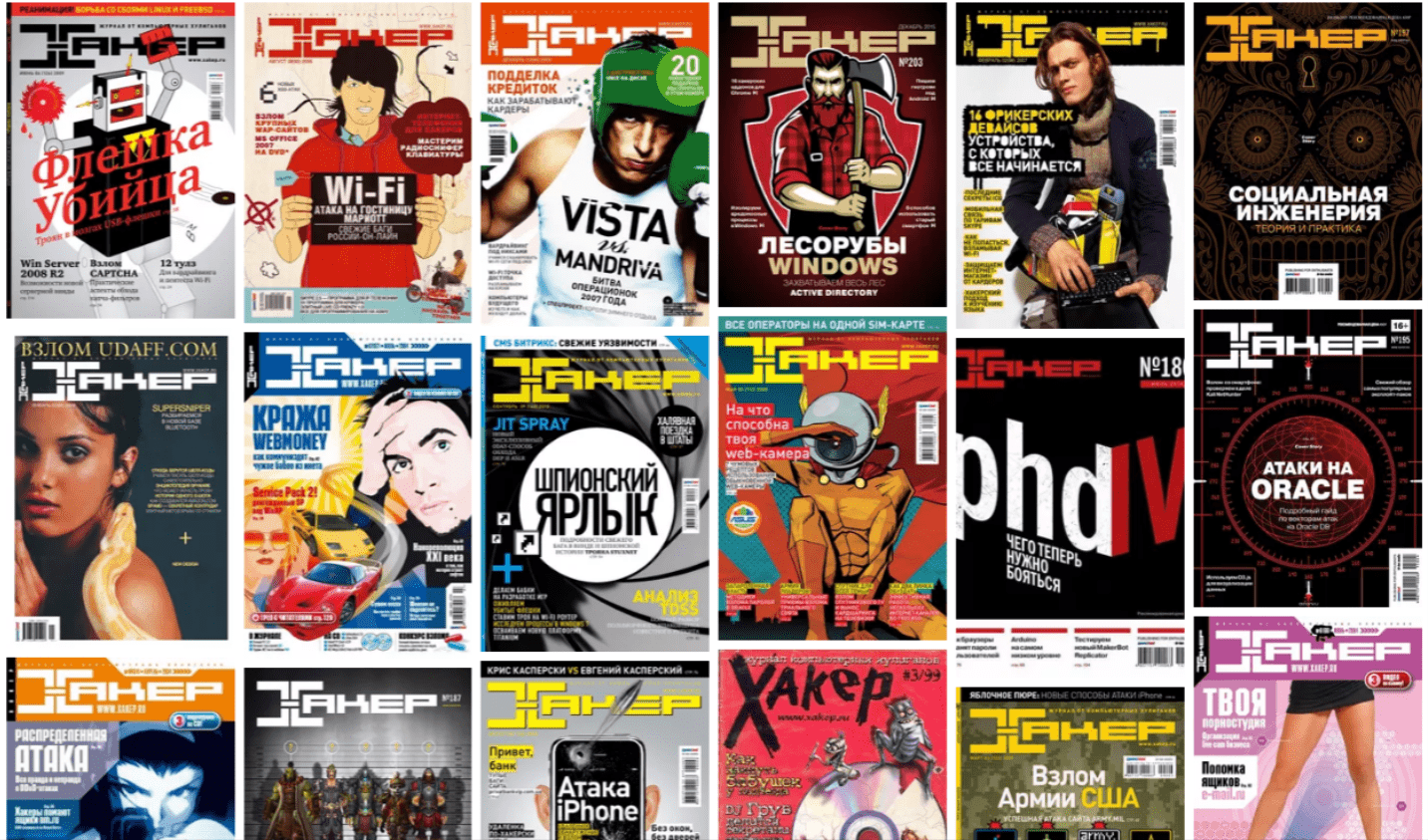 Все , которые на данный момент возможно купить выпуски журнала "Хакер".