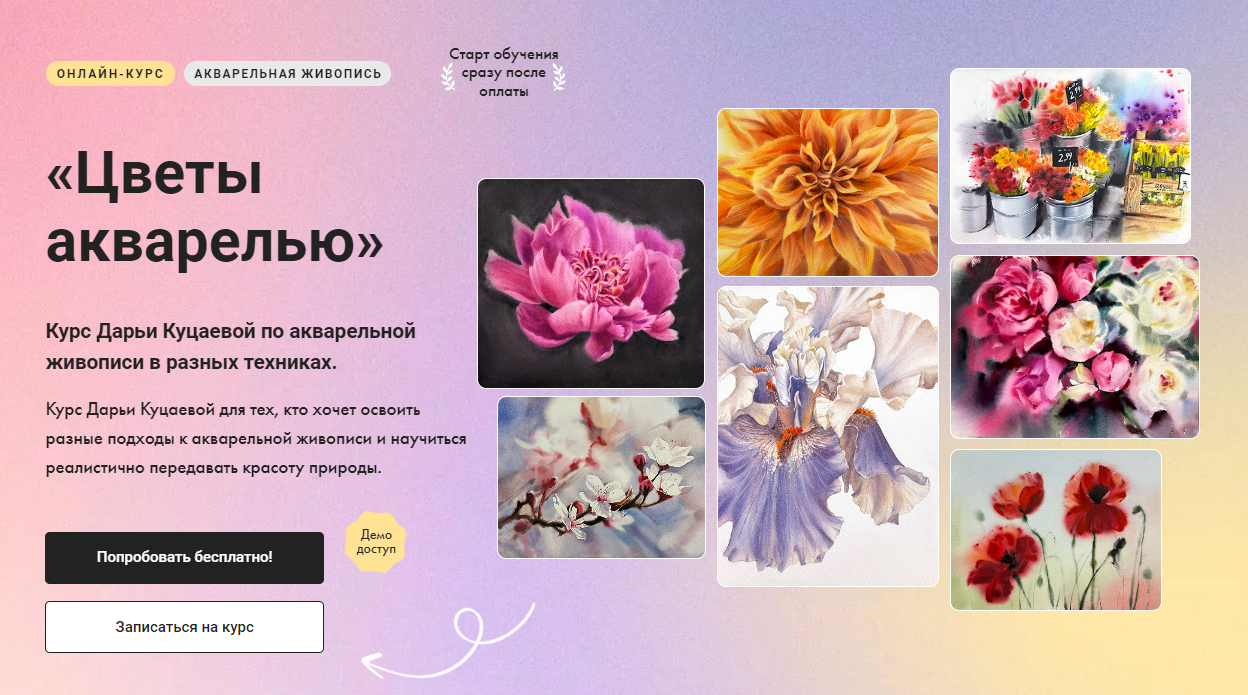 Курс Дарьи Куцаевой по акварельной живописи в разных техниках.www.hudozhnik.online