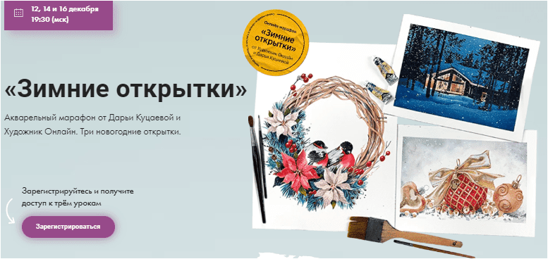 Вебинарный курс от Дарьи Куцаевой и Художник Онлайн. Три новогодние открытки.www.hudozhnik.online