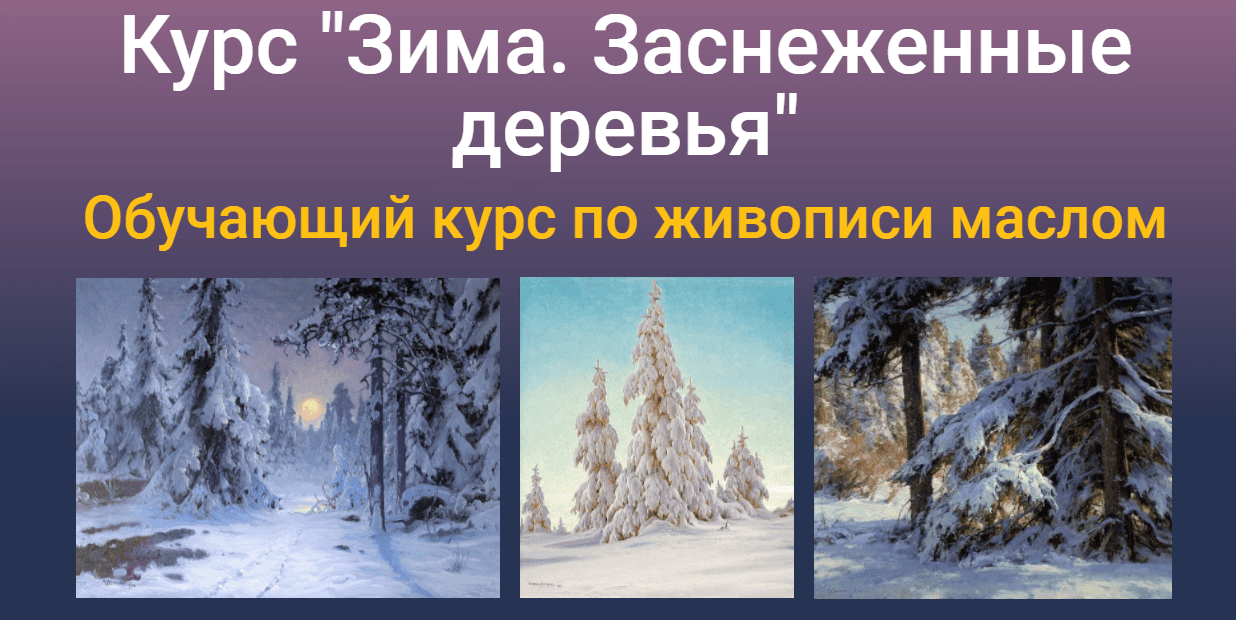 Курс "Зима. Заснеженные деревья" Обучающий курс по живописи маслом 3 пейзажа маслом Записаться Научитесь писать по-настоящему зимние деревья Снег –zartschool.ru