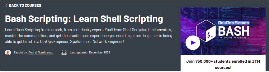 Learn Bash Scripting from scratch. You'll learn shell scripting fundamentals plus get the practice & experience to get hired as a DevOps Engineer.zerotomastery.io