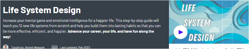 Может ли курс сделать вас счастливее? Может ли курс повысить ваш эмоциональный интеллект и сделать вас умственно сильнее? Я думаю, что да, и это курс, который я создал именно для этого. Я знаю, это смелое заявление... но этот курс разрабатывался в течение 10 лет, и я считаю, что он не похож ни на что другое, что вы там найдете. Курс научит вас 12 системам и предложит вам реализовать каждую из них через 30-дневный вызов, чтобы вы могли стать лучшей версией себя.