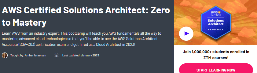 Learn + master AWS. This 15-hour AWS bootcamp will make sure you ace the Certified Solutions Architect Associate exam, become a Cloud Architect, and get hired.zerotomastery.io