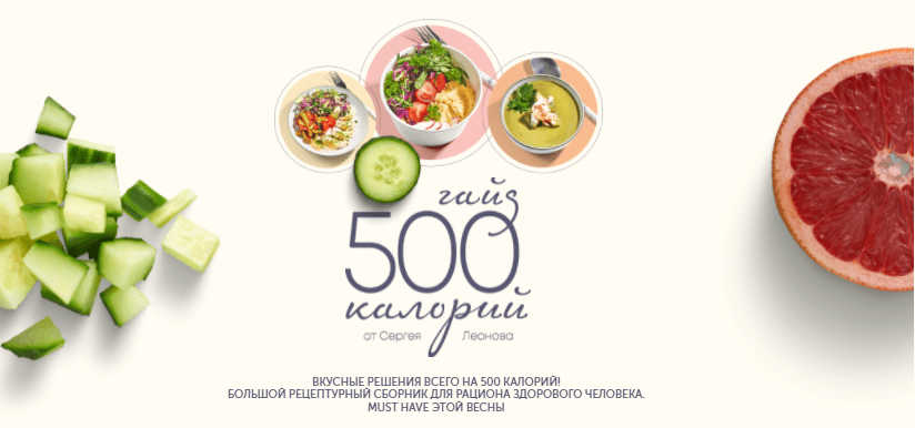 ГАЙД «500 КАЛОРИЙ» — ЭТО БОЛЬШОЙ РЕЦЕПТУРНЫЙ СБОРНИК ОТ СЕРГЕЯ ЛЕОНОВА В УДОБНОМ ФОРМАТЕ ДЛЯ ЭЛЕКТРОННОГО И ПЕЧАТНОГО ИСПОЛЬЗОВАНИЯ